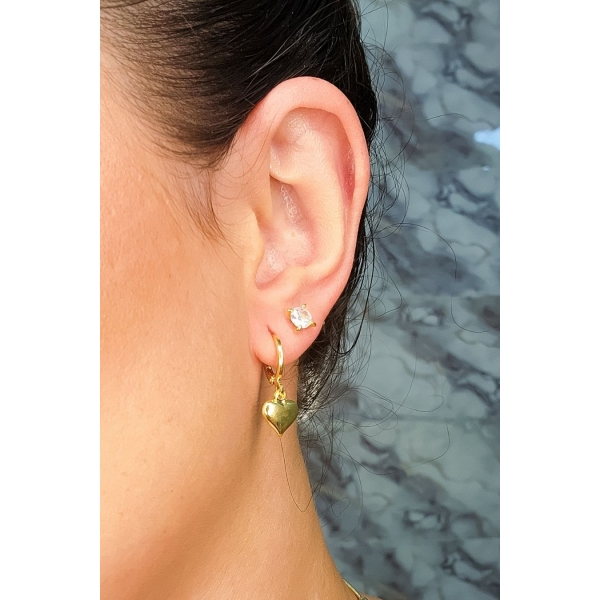 Brinco Argolinha com Coração Grande Banhado em Ouro 18k - Dourado