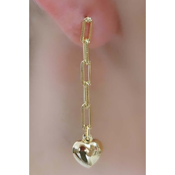 Brinco Corrente Elo com Coração na Ponta Banhado em Ouro 18k - Dourado