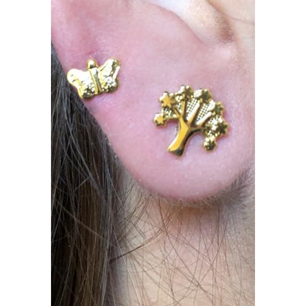 Brinco Duo de Árvore e Borboleta Banhado em Ouro 18k - Dourado