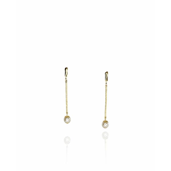 Brinco Fio Trabalhado com Perola na Ponta Banhado em Ouro 18k - Dourado