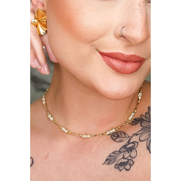 Informações do produto: Colar Choker com Mini Pérolas na Corrente Banhado em Ouro 18k - Dourado