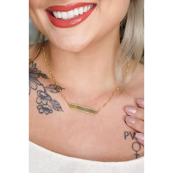 Colar com Corrente e Pingente Gratidão Banhado em Ouro 18k - Dourado
