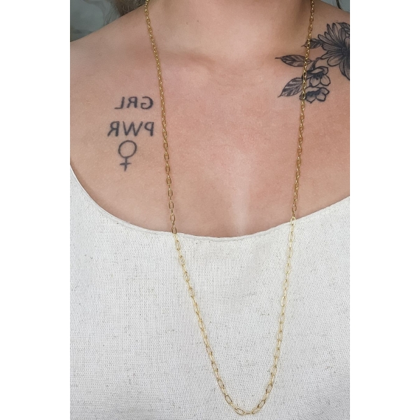 Este colar apresenta uma corrente estilo Cartier 1.0, banhada em ouro 18k, oferecendo um visual clássico e sofisticado. O design elegante e versátil torna esta peça perfeita para uso diário ou para complementar looks mais formais. Perfeito para quem busca uma joia atemporal e cheia de estilo, este colar é uma escolha encantadora e durável.