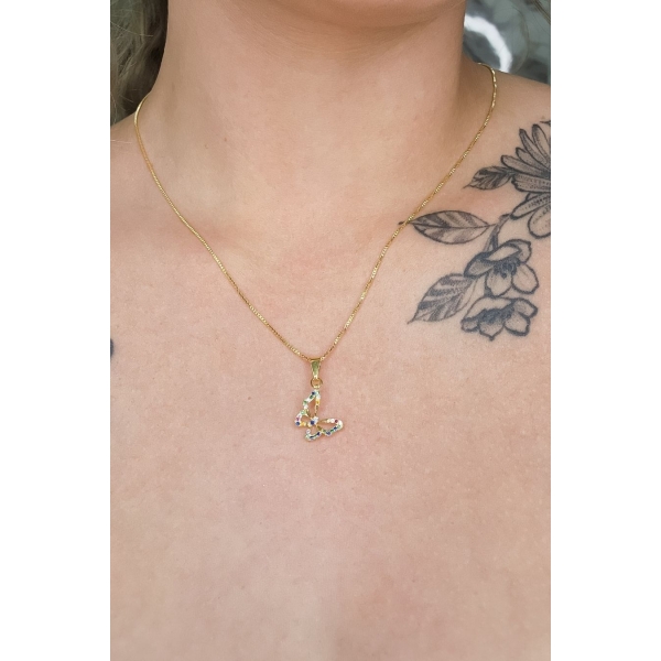 Informações do produto: Colar Pingente Borboleta com Zircônia Colorida Banhado em Ouro 18k - Dourado