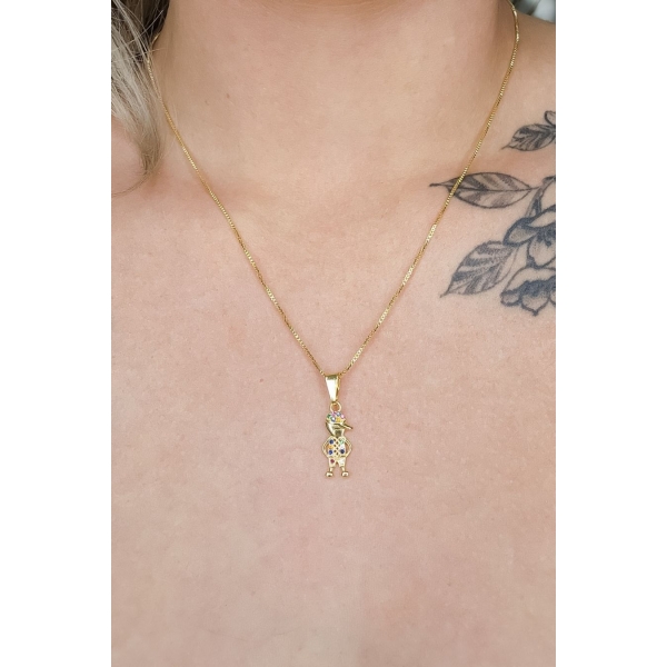 Colar Pingente Menino com Zircônia Colorida Banhado em Ouro 18k - Dourado